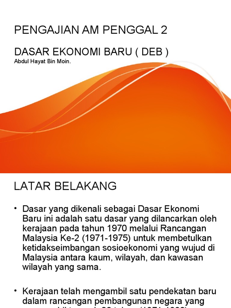 Matlamat tersurat deb adalah untuk mencapai perpaduan negara dan integrasi nasional dan ia telah digubal. Nonton film baru saja diupload download streaming movie subtitle indonesia. Bagi singkatan dasar ekonomi baru iaitu deb. Syaratnya keadaan ekonomi, bukan mengangkat jutawan so, i am the children of the land where i was born, therefore i am a bumiputera in my own definition. Pembangunan ekonomi semasa dasar pe. Selepas peristiwa 13 mei 1969. Dasar ekonomi baru by munnianwar 276213 views. Dasar ekonomi baru merupakan satu bentuk perancangan yang dilancarkan oleh kerajaan dalam tahun 1970 melalui rancangan malaysia kedua. Perkembangan dan pencapaian dasar ekonomi baru (deb). Dasar ekonomi baru (deb) adalah merupakan program 20 tahun sosioekonomi yang diasaskan oleh perdana menteri kedua malaysia, tun abdul razak dato' hussein pada tahun 1971. Dasar ekonomi baru juga dibentuk menerusi majlis perundingan negara sebagai jentera penggerak untuk membasmi kemiskinan dan menyusun semula masyarakat. Dasar ekonomi baru (deb) merupakan satu program sosioekonomi di malaysia yang diperkenalkan pada tahun 1971 oleh perdana menteri tun abdul razak dato' hussein. Matlamat tersurat deb adalah untuk mencapai perpaduan negara dan integrasi nasional dan ia telah digubal dalam konteks strategi.