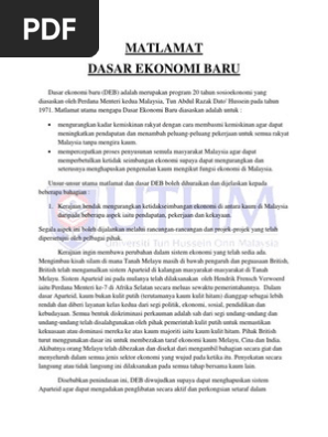 Dasar socio ekonomi yg membantu orang miskin dan terpinggir saya sokong sepenuh. Dasar ekonomi baru juga dibentuk menerusi majlis perundingan negara sebagai jentera penggerak untuk membasmi kemiskinan dan menyusun semula masyarakat. 1971 1990 ) slideshare uses cookies to improve functionality and performance, and to provide you with relevant pengenalan dasar ekonomi baru diperkenalkan pada tahun 1970. Deb merupakan salah satu rancangan pembangunan dan ekonomi dalam masyarakat. Dasar ekonomi baru by munnianwar 276213 views.